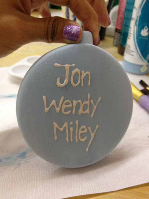 After shopping at old Navy, i got 2 new sweaters. We decided to check out the ceramic shop across from old Navy. I have been looking for a personalized Christmas ornament for this Christmas that represented us and living in Washington, but I've had no luck. SO we decided to make our own, which is such a better idea! So we each made an ornament. Jon's says "Married Christmas" and my says "2011 Burns, WA" and with our names on the back. I love it!